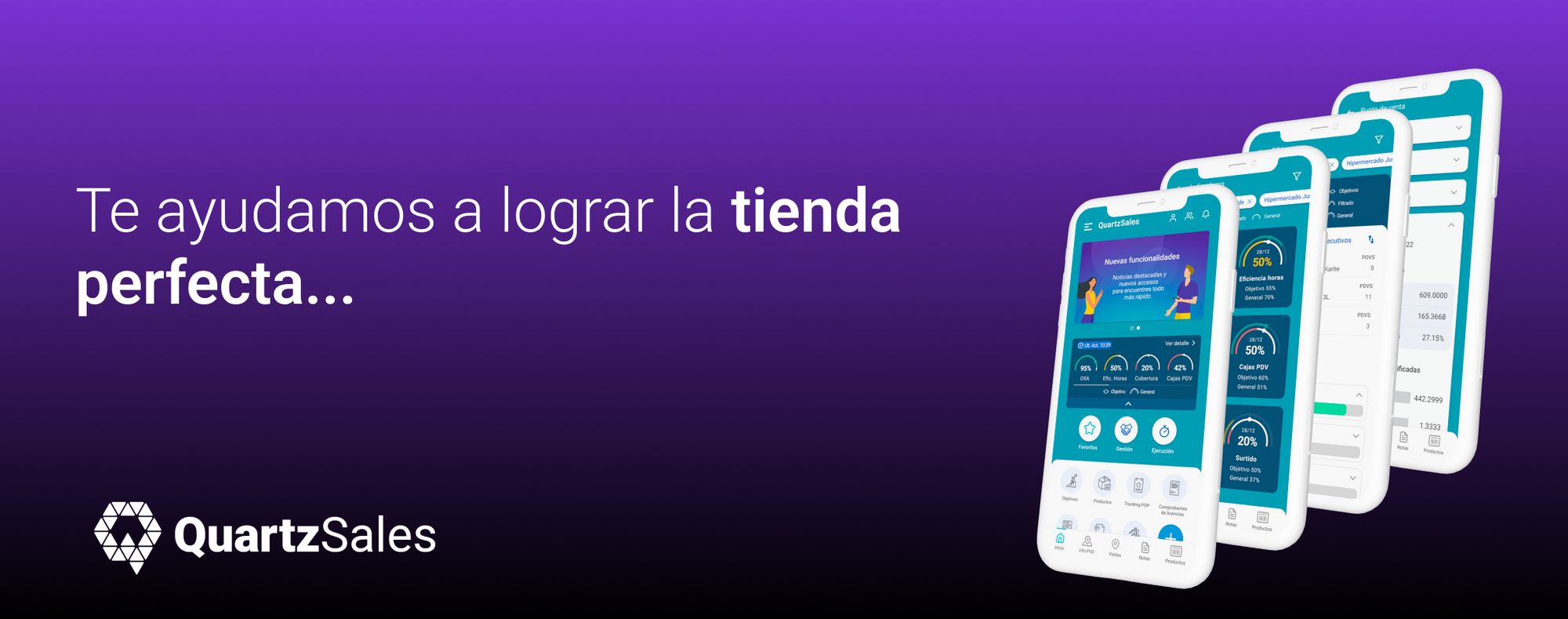 Con el avance de la IA, las empresas tienen la oportunidad de optimizar sus operaciones y mejorar la ejecución en el punto de venta de manera significativa. Con QuartzSales procesamos en una sola plataforma los portales B2B e información de todos los retailers (Sell Out y Stock), Sell In y muchas otras fuentes de información y junto a la ayuda de IA generamos información, indicadores y tareas.