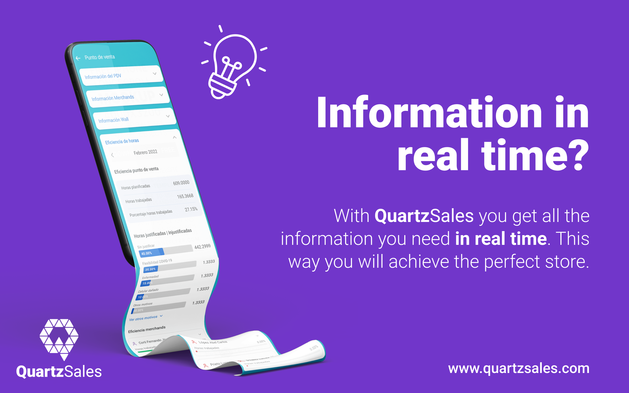 By implementing QuartzSales as a platform for the comprehensive management of your trade marketing strategy, you have access to all this information and more. Request your demo and increase your productivity starting today.